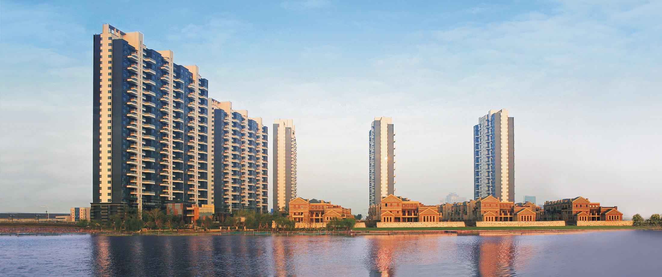 項(xiàng)目總占地面積約6萬(wàn)平方米,總建筑面積約15萬(wàn)平方米,有16棟建筑,建筑類(lèi)型為高層和排屋,共600余戶。項(xiàng)目于2007年3月開(kāi)始銷(xiāo)售,于2008年12月交付使用。